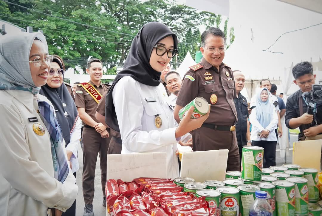 Bandar Lampung — Wakil Gubernur Lampung, Jihan Nurlela, meninjau langsung pelaksanaan Bazar Pasar Murah Ramadan yang diselenggarakan oleh Kejaksaan Tinggi Lampung di halaman Kantor Kejati Lampung pada Rabu (26/02/2025).