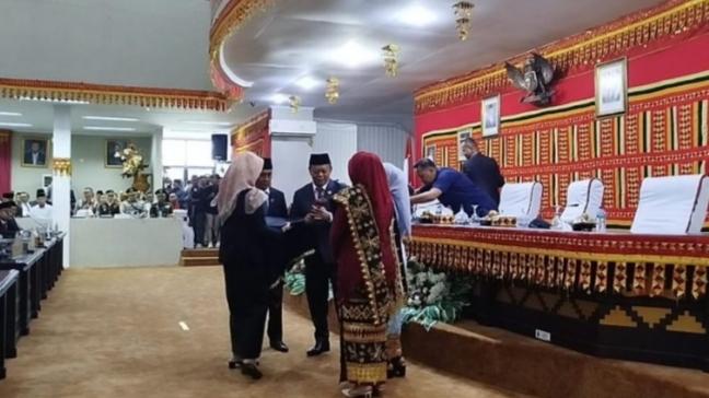 Lampung Selatan – Hendry Rosyadi Serahkan Palu kepemimpinan Dewan Perwakilan Rakyat Daerah (DPRD) Lampung Selatan ke Erma Yusneli sebagai pimpinan sementara ketua masa jabatan 2024-2024.