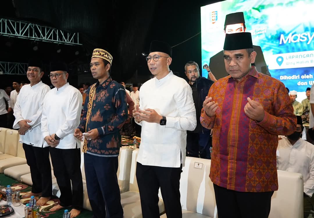 Acara Tabligh Akbar yang digelar di Pusat Kegiatan Olahraga (PKOR) Way Halim, Kota Bandar Lampung, pada Jumat malam (25/04/2025), ini juga dihadiri oleh Ketua MPR RI Ahmad Muzani.